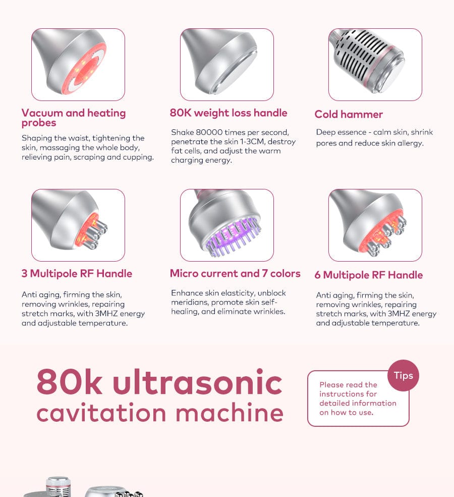 80k 6 IN 1 Cavitation RF Skin Tightening Machine Function