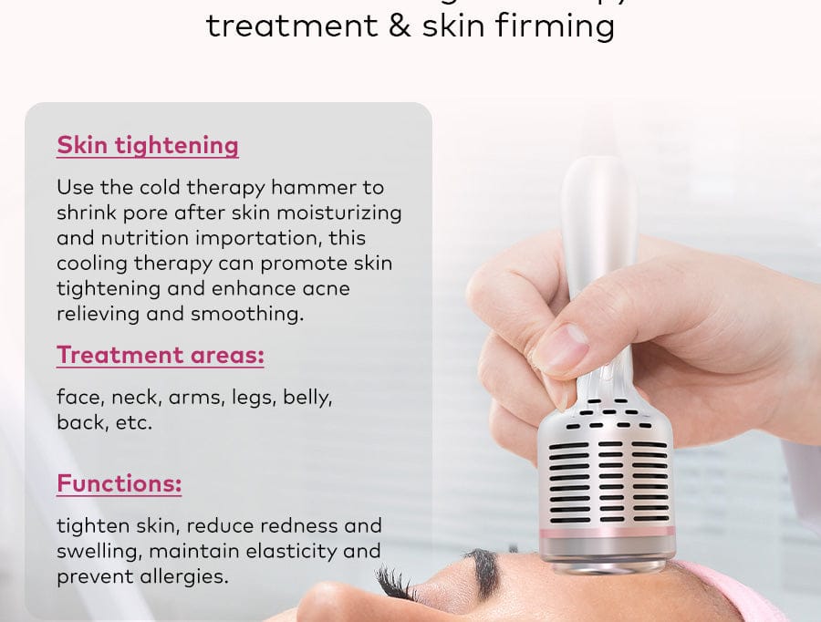 5. Cooling Head: Shrinks facial skin pores, repairs sun damage, soothes and calms the skin, reduces redness and swelling, locks in moisture