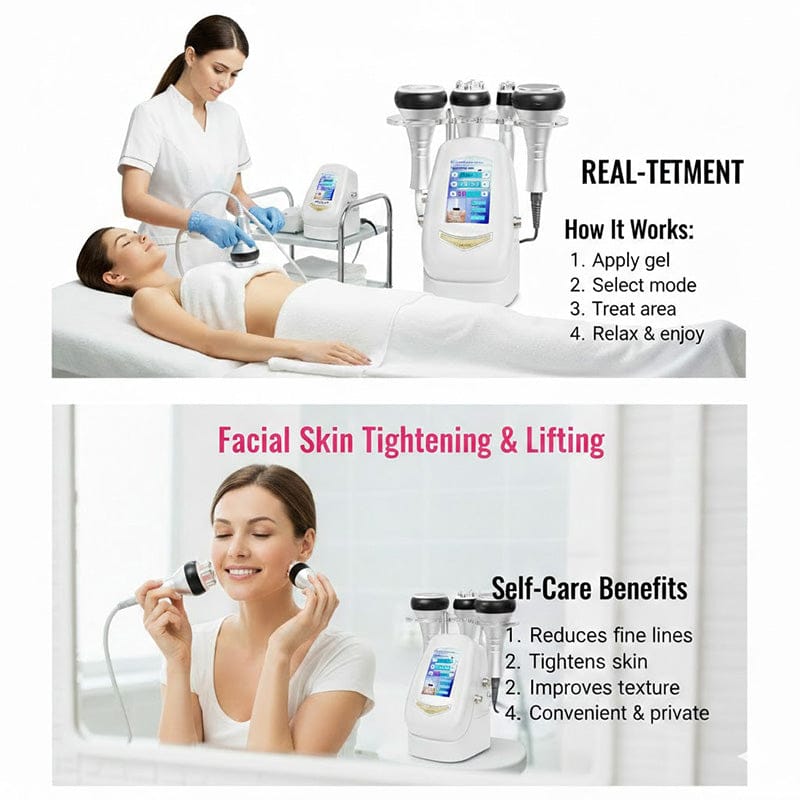 Ultrasonic Cavitation Machine is a body contouring device that uses low-frequency ultrasound waves to target and break down fat cells in specific areas of the body. It is commonly used for fat reduction, cellulite reduction, and body sculpting.